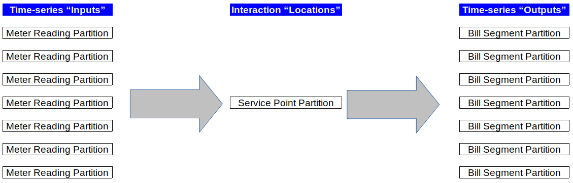 | Time-series "Inputs" (Customer Interactions) | Interaction "Locations" (Service Points) | Time-series "Outputs" (Calculated by Application) |